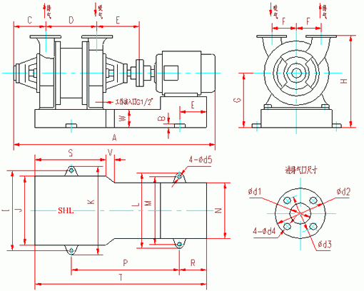 SK-0.4、SK-0.8水環式(shi)真空泵及壓縮機(ji)外形及安裝尺寸(cùn)圖