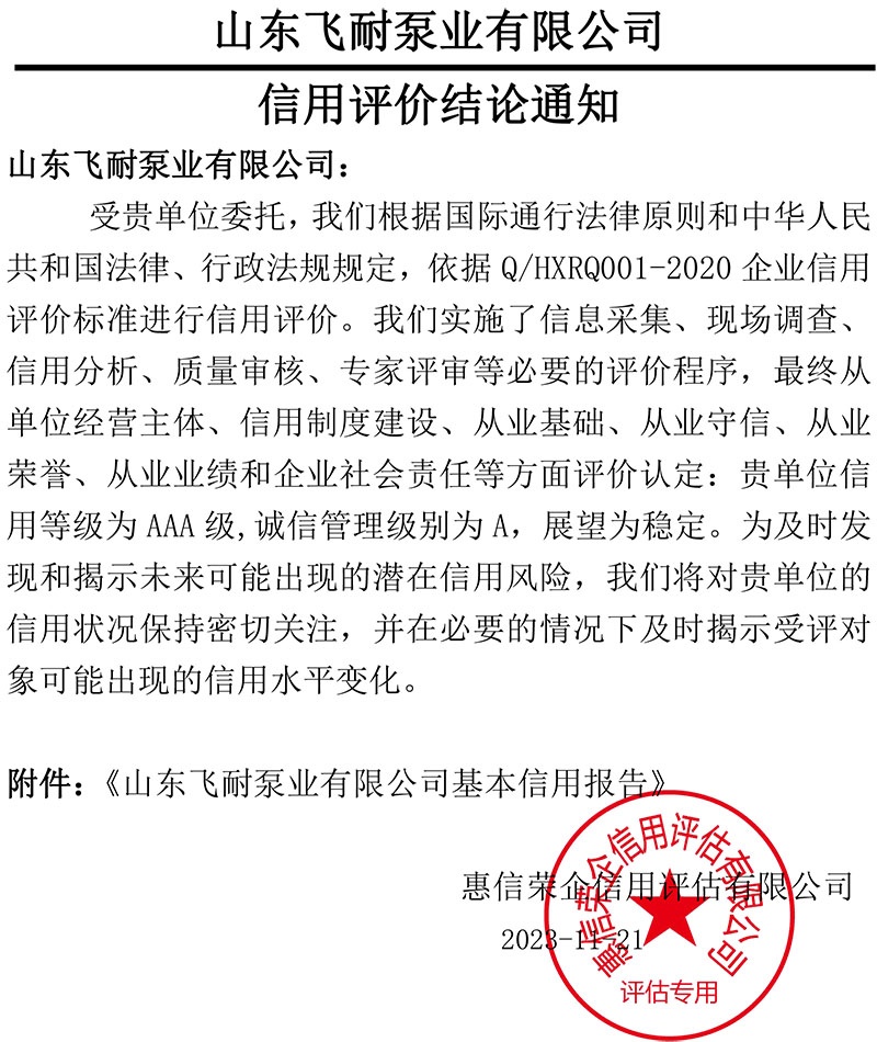 山東飛(fei)耐泵業有限(xian)公司高新技(jì)術企業提供(gòng)泵類産品一(yi)站式購齊服(fu)務